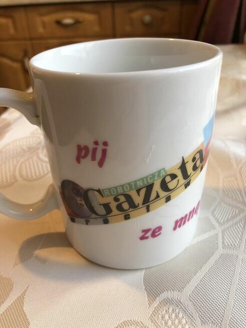 Nowy kubek z dedykacją 'Pij robotnicza gazeta ze mną'. Kubek jest biały, z kolorowym nadrukiem. Idealny na ...